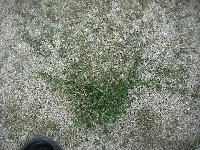 梅雨の中休み、雨があがりました。芝生は、植えて8日目です。何本かぐんぐんと伸びている茎(ランナー)があります。 | ![]() |